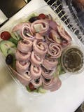 Our traditional garden salad topped with sliced roast turkey breast, baked virginia ham & provolone cheese.